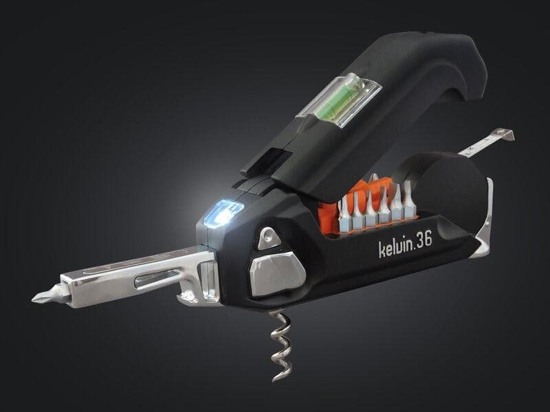 Kelvin.36 är ett smart multiverktyg som samlar hela 36 olika funktioner i en och samma enhet. Med detta kompakt format är det lätt att ha med sig och perfekt att plocka fram när det är dags för lite småfix hemma eller på utflykten. Oavsett om det handlar om att skruva ihop möbler, hänga upp tavlor eller öppna vinflaskor.